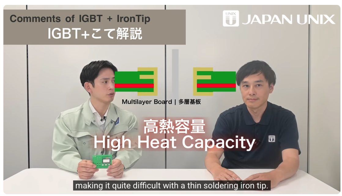 Naka Hello everyone. I’m Nakano from Japan Unix. In today’s episode of the “Let’s try Soldering” series, the theme is IGBT soldering. Our guest today is Mr. Yanaka from the technical team.