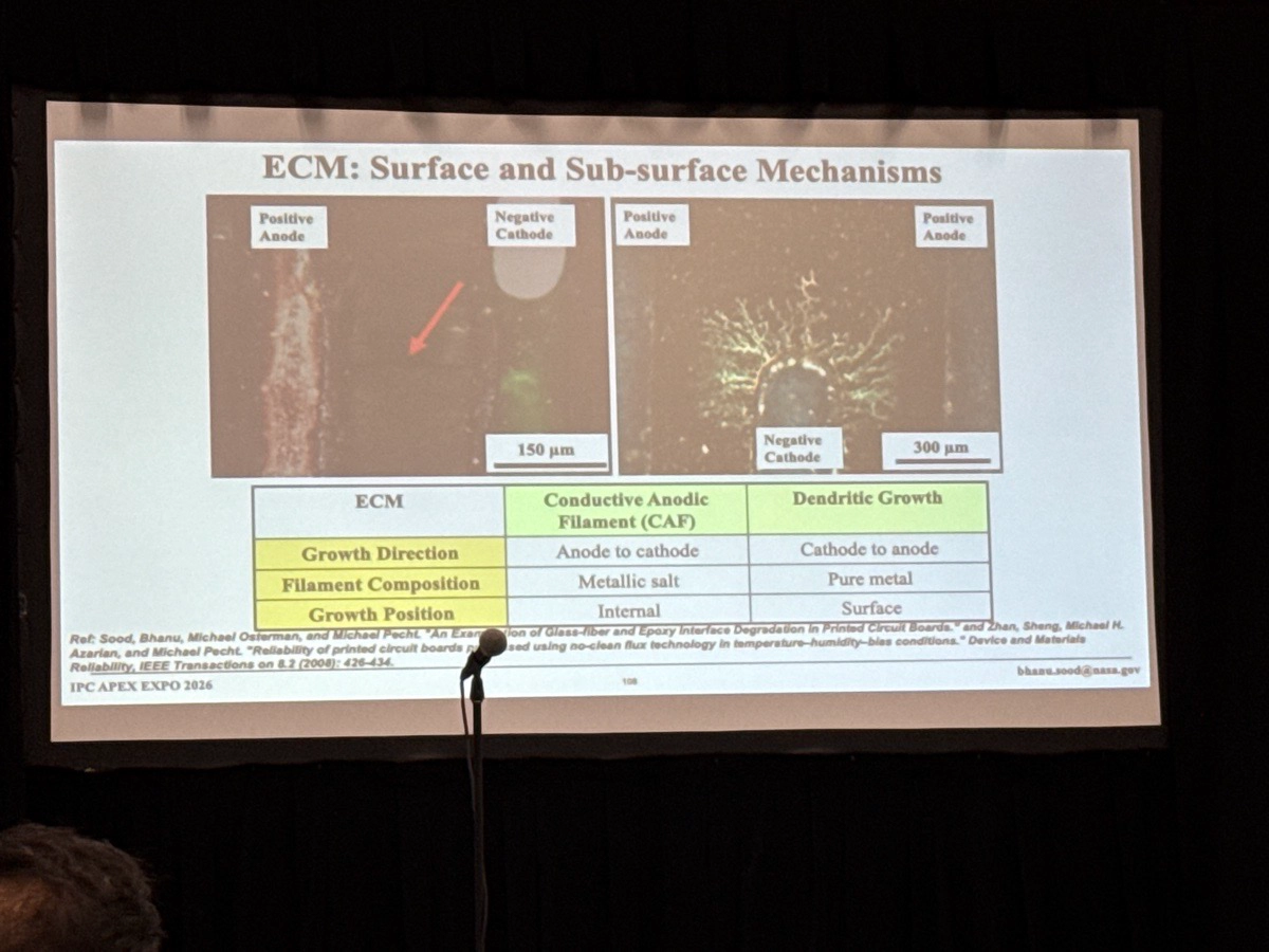 展示会では、弊社JAPAN UNIXをはじめ、各社による製品・技術の提示と対面での情報交換が行われました。委員会では、IPC規格の改訂や車載用途を中心とした基準の見直しが議論されました。テクニカルカンファレンスでは、はんだ接合信頼性、PCB製造プロセス、清浄度評価といったテーマについて、各社・研究機関から実データに基づく発表が行われました。プロフェッショナルデベロップメントでは、アドバンスドパッケージおよび信頼性工学に関する体系的な講義が提供されました。