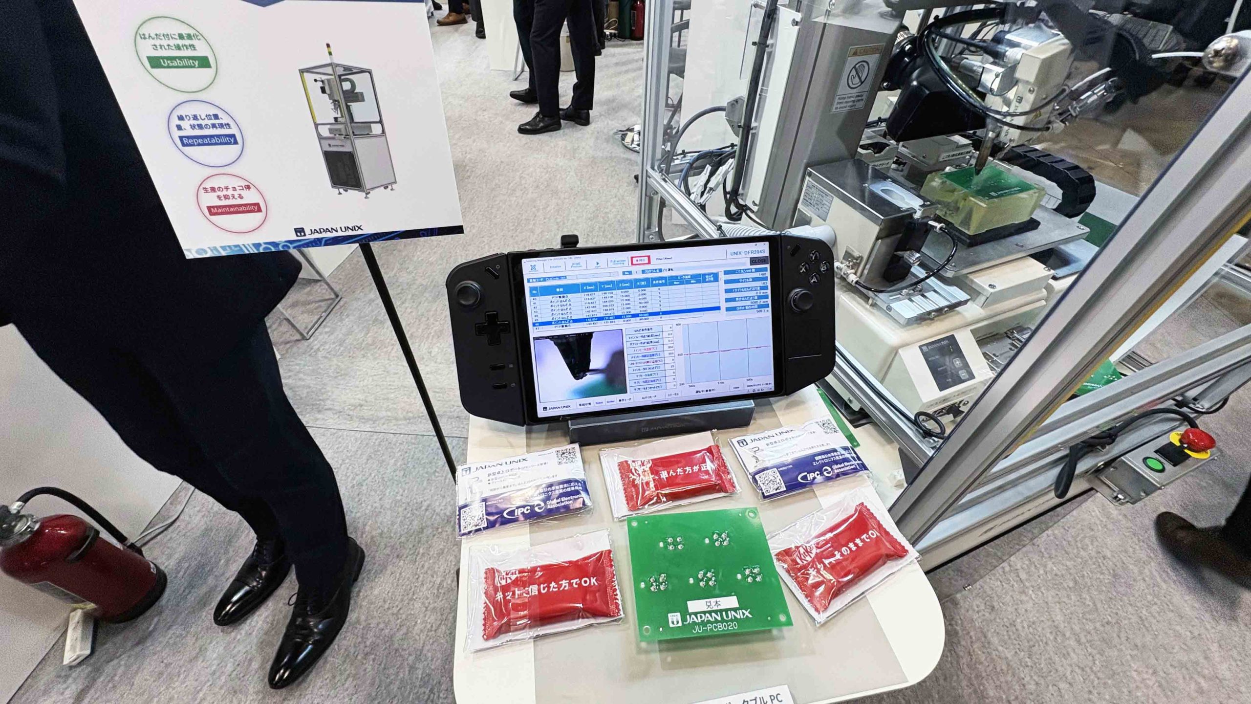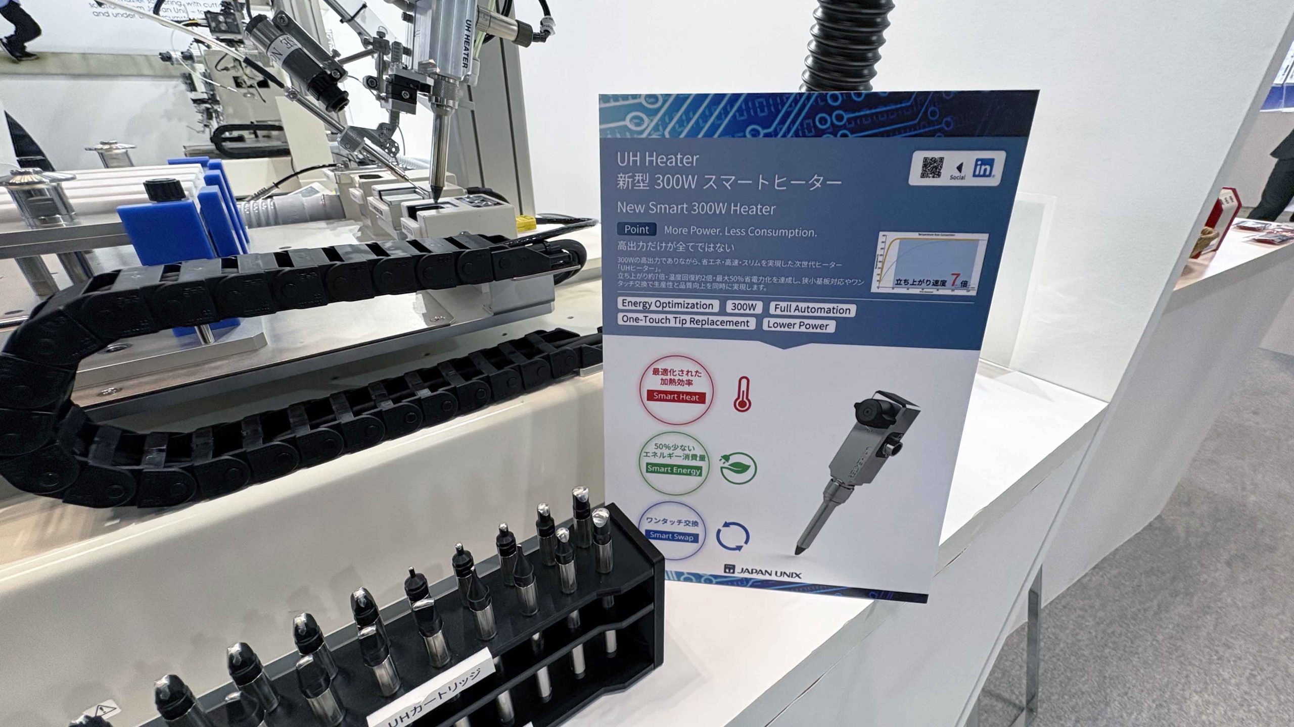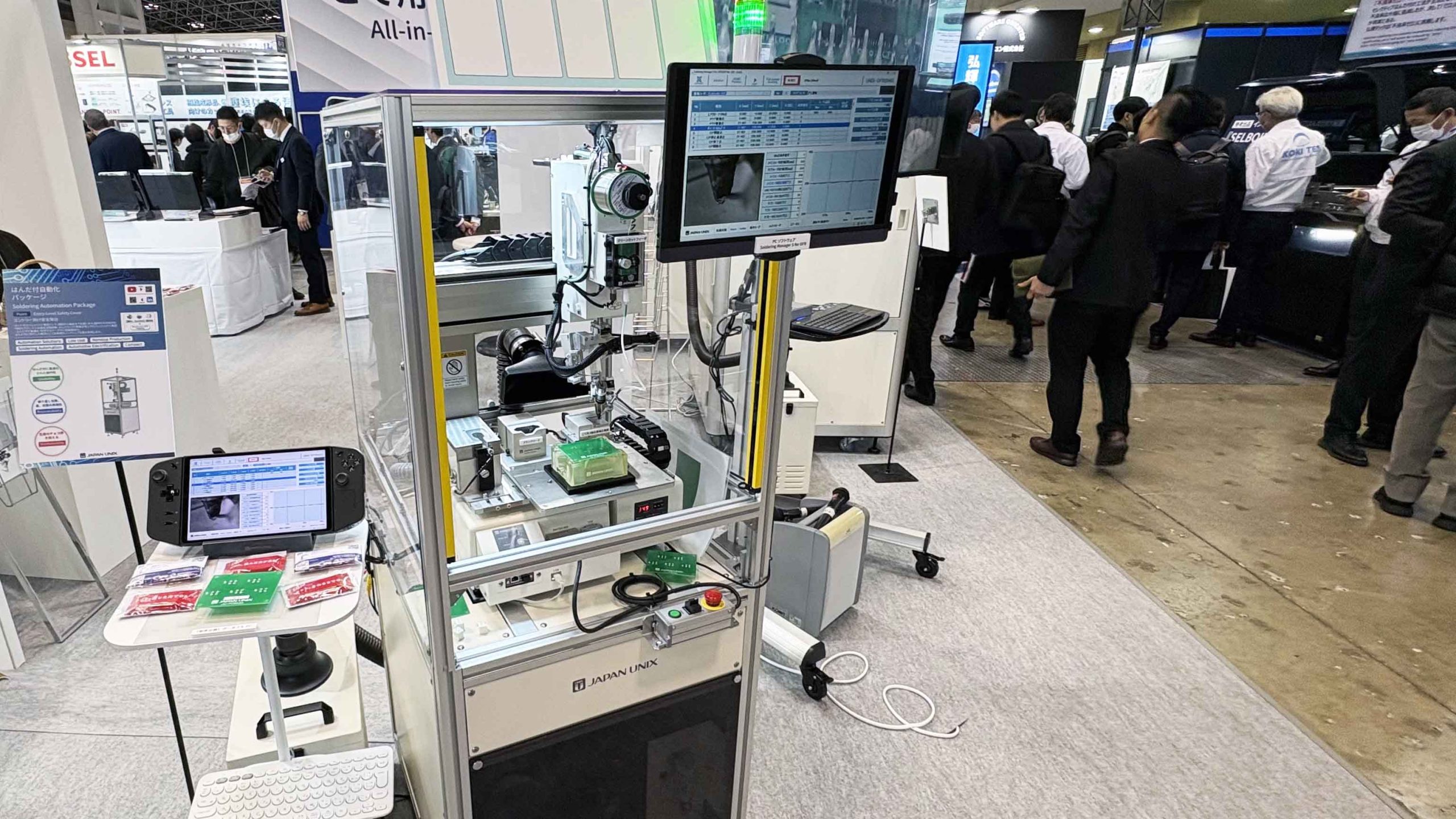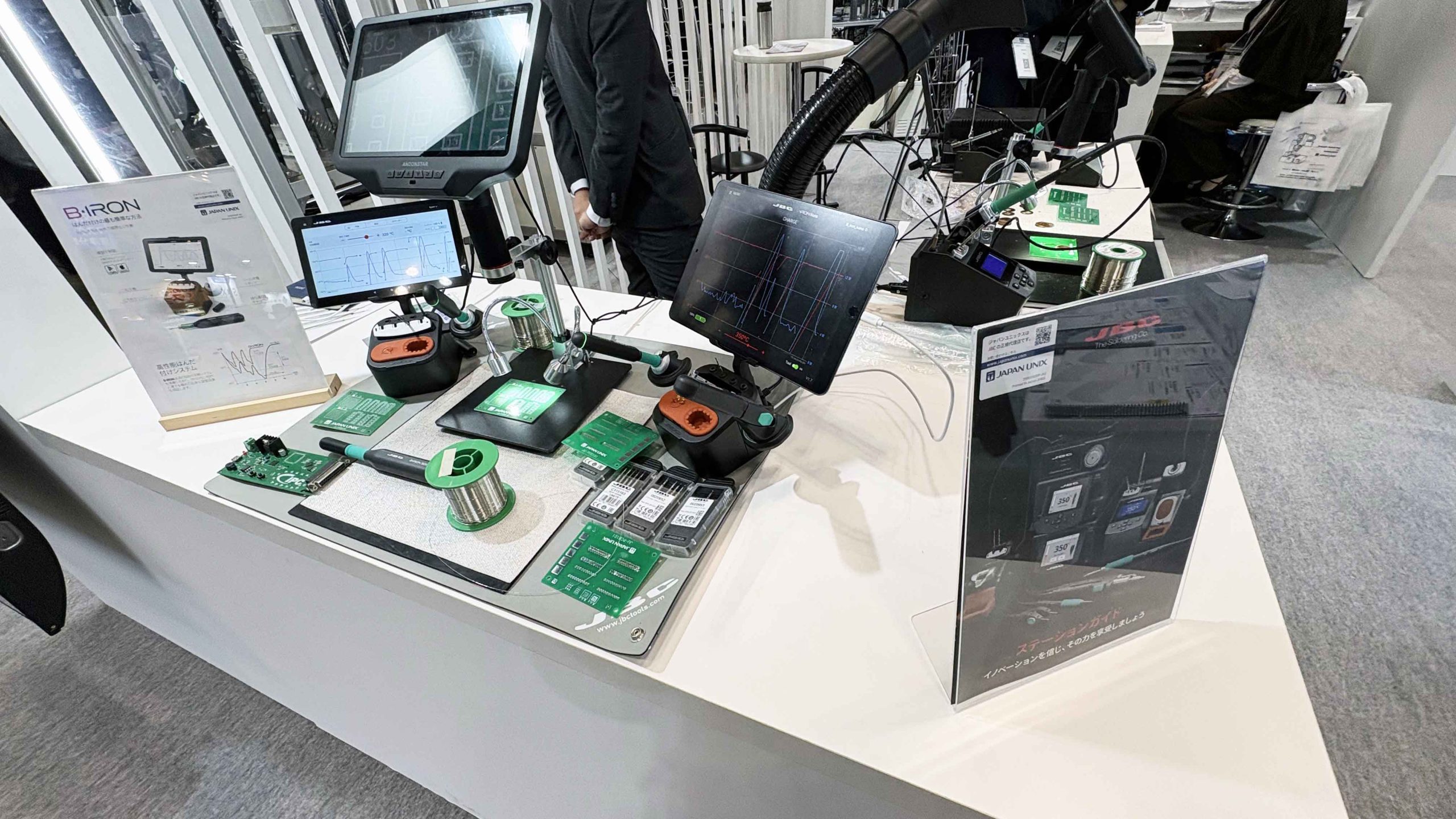 🔹 体験デモ機の展示 — 実際の自動はんだ付けを見ながら、プロセスをその場で確認できます。