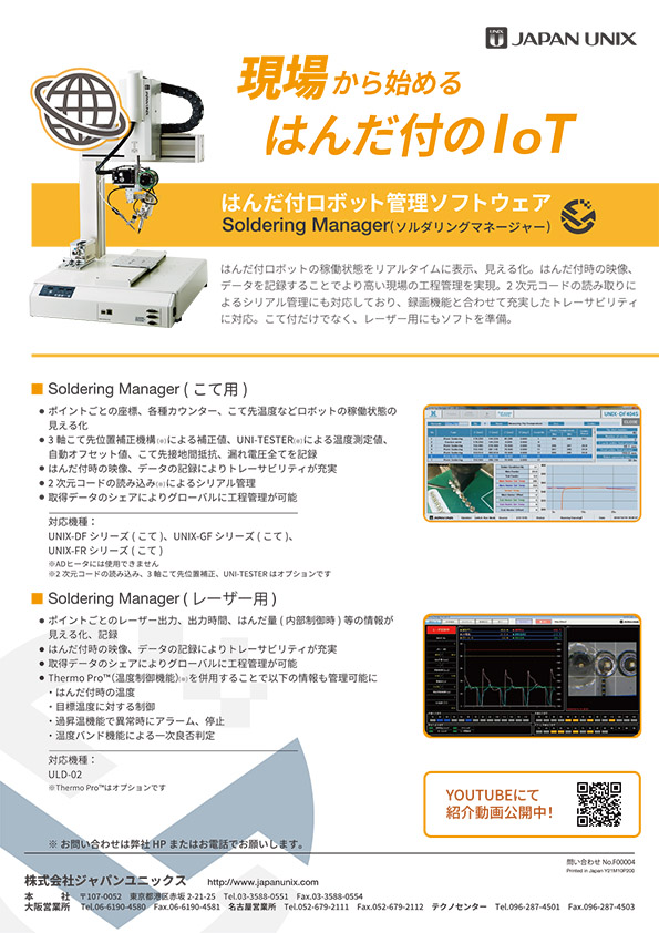 はんだ付けロボットの稼働状態をリアルタイムに表示、見える化。はんだ付け時の映像、データを記録することでより高い現場の工程管理を実現。