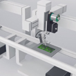 Robot de soldadura ultrasónica. Soldando sobre una superficie de vidrio